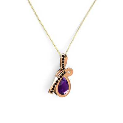 Siyah zirkon ve ametist 925 ayar rose altın kaplama gümüş kolye (40 cm gümüş rolo zincir)