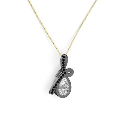 Siyah zirkon ve beyaz zirkon 925 ayar siyah rodyum kaplama gümüş kolye (40 cm gümüş rolo zincir)