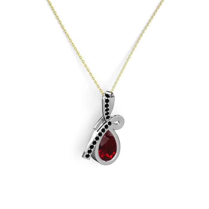 Siyah zirkon ve garnet 14 ayar beyaz altın kolye (40 cm gümüş rolo zincir)