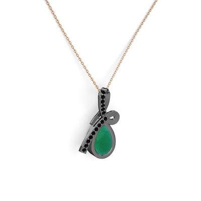 Siyah zirkon ve kök zümrüt 925 ayar siyah rodyum kaplama gümüş kolye (40 cm rose altın rolo zincir)
