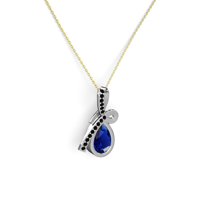 Siyah zirkon ve lab safir 14 ayar beyaz altın kolye (40 cm gümüş rolo zincir)
