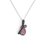 Siyah zirkon ve pembe kuvars 925 ayar siyah rodyum kaplama gümüş kolye (40 cm beyaz altın rolo zincir)