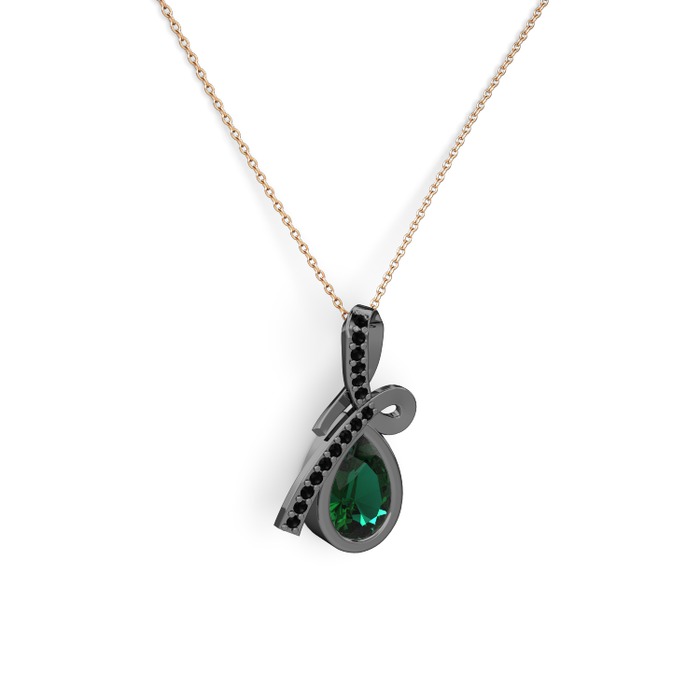 Siyah zirkon ve yeşil kuvars 925 ayar siyah rodyum kaplama gümüş kolye (40 cm rose altın rolo zincir)