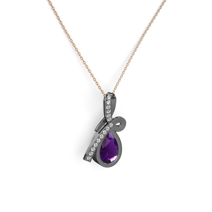 Swarovski ve ametist 925 ayar siyah rodyum kaplama gümüş kolye (40 cm gümüş rolo zincir)