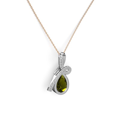 Swarovski ve peridot 925 ayar gümüş kolye (40 cm rose altın rolo zincir)