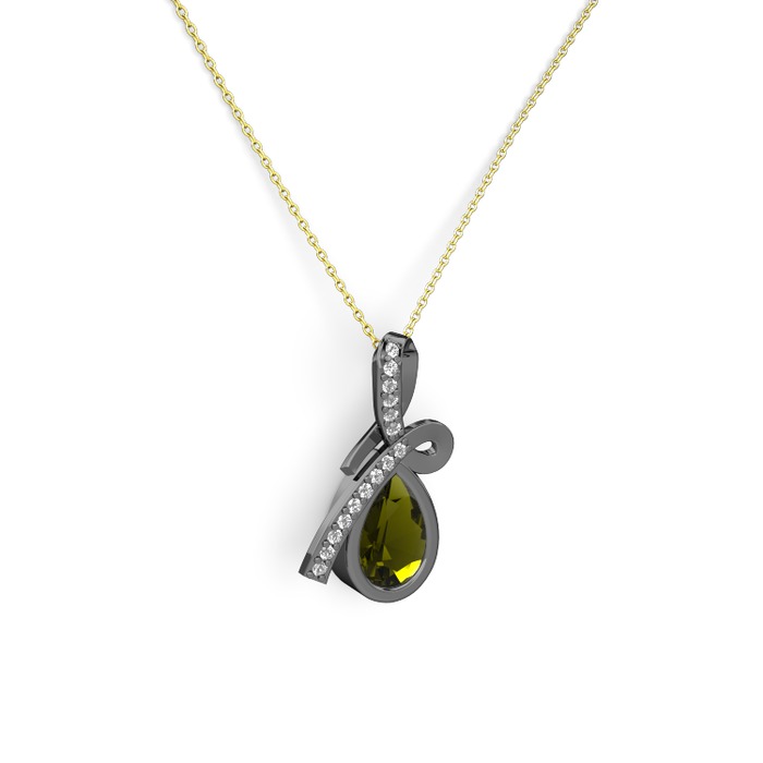 Swarovski ve peridot 925 ayar siyah rodyum kaplama gümüş kolye (40 cm altın rolo zincir)