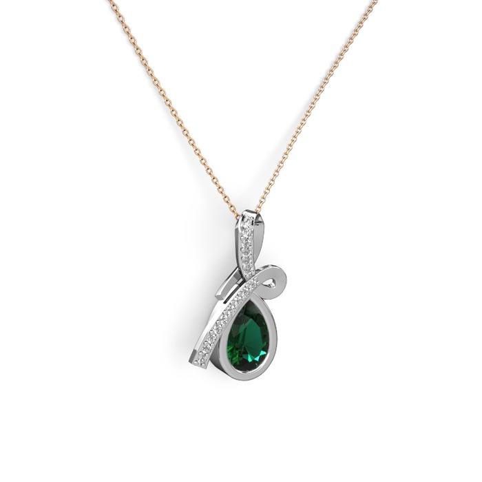 Swarovski ve yeşil kuvars 18 ayar beyaz altın kolye (40 cm rose altın rolo zincir)