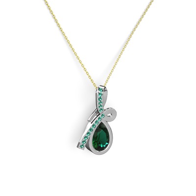 Yeşil kuvars 18 ayar beyaz altın kolye (40 cm gümüş rolo zincir)