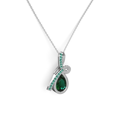 Yeşil kuvars 18 ayar beyaz altın kolye (40 cm gümüş rolo zincir)