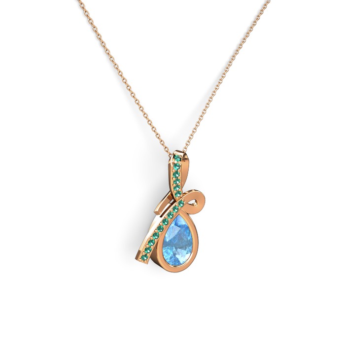 Yeşil kuvars ve akuamarin 14 ayar rose altın kolye (40 cm rose altın rolo zincir)