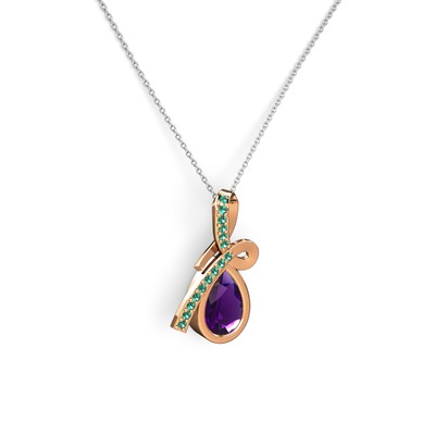 Yeşil kuvars ve ametist 8 ayar rose altın kolye (40 cm gümüş rolo zincir)