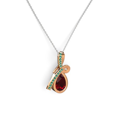 Yeşil kuvars ve garnet 18 ayar rose altın kolye (40 cm beyaz altın rolo zincir)