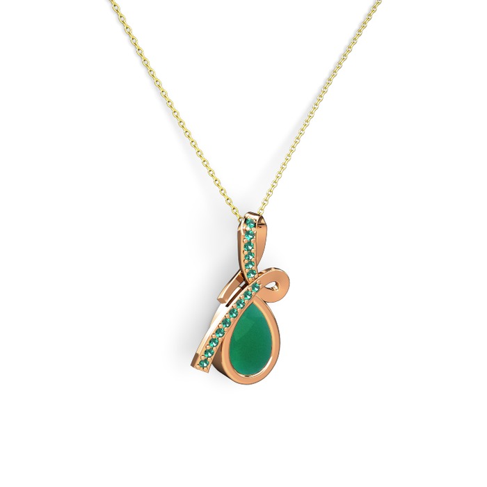 Yeşil kuvars ve kök zümrüt 8 ayar rose altın kolye (40 cm altın rolo zincir)