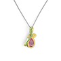 Yeşil kuvars ve pembe kuvars 18 ayar altın kolye (40 cm gümüş rolo zincir)