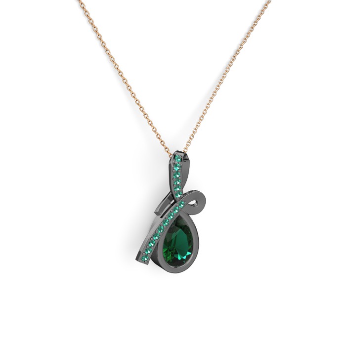 Yeşil kuvars 925 ayar siyah rodyum kaplama gümüş kolye (40 cm rose altın rolo zincir)
