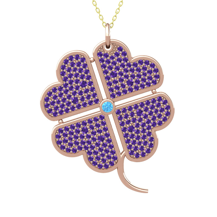 Akuamarin ve ametist 14 ayar rose altın kolye (40 cm altın rolo zincir)