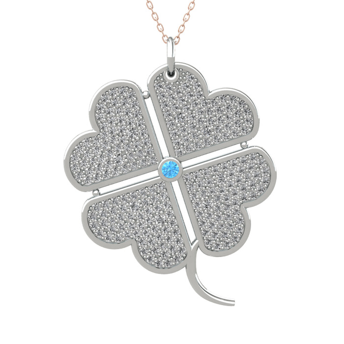Akuamarin ve beyaz zirkon 925 ayar gümüş kolye (40 cm gümüş rolo zincir)