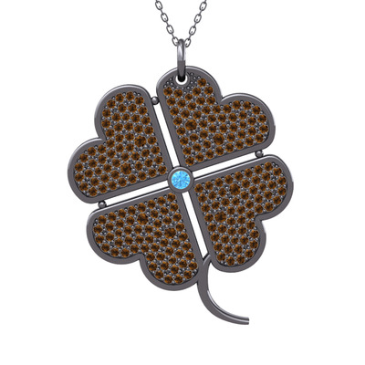 Akuamarin ve dumanlı kuvars 925 ayar siyah rodyum kaplama gümüş kolye (40 cm gümüş rolo zincir)