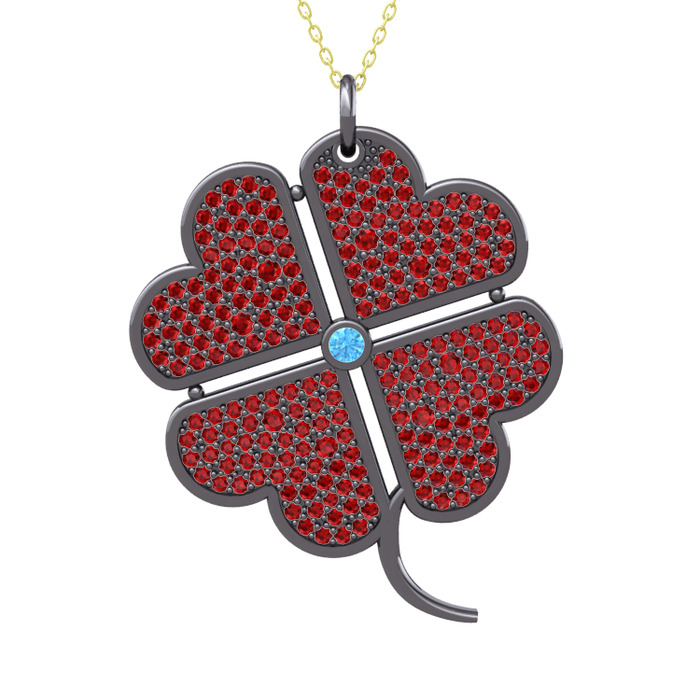 Akuamarin ve garnet 925 ayar siyah rodyum kaplama gümüş kolye (40 cm gümüş rolo zincir)