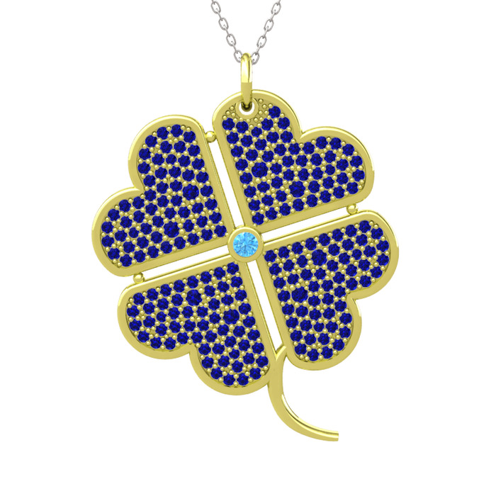 Akuamarin ve lab safir 18 ayar altın kolye (40 cm beyaz altın rolo zincir)