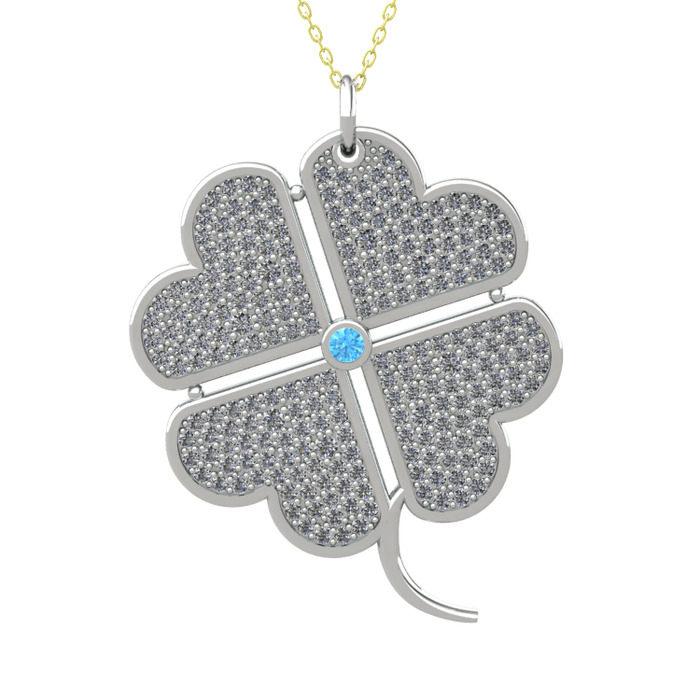 Akuamarin ve pırlanta 925 ayar gümüş kolye (3.3 karat, 40 cm altın rolo zincir)