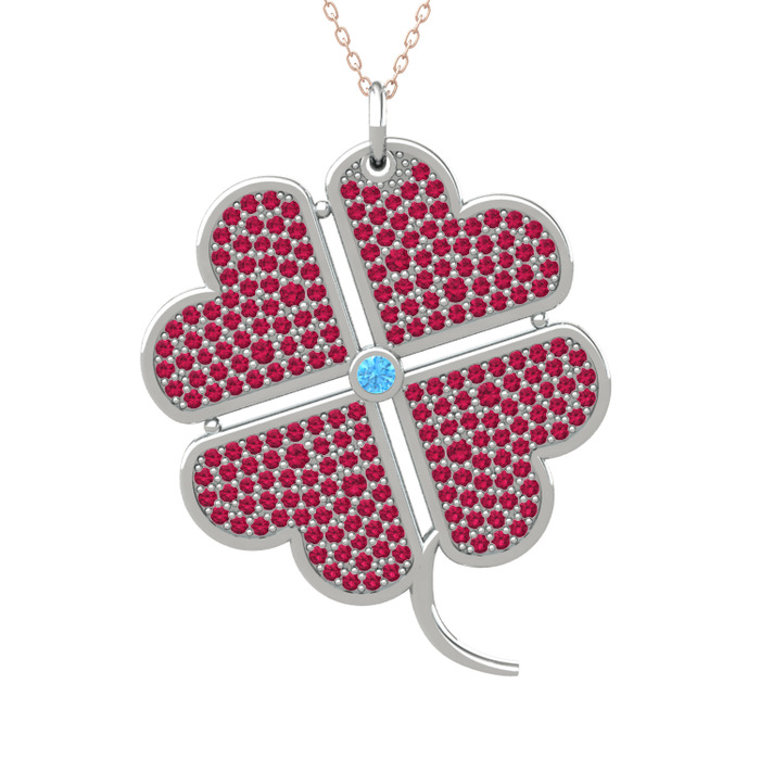 Akuamarin ve rodolit garnet 8 ayar beyaz altın kolye (40 cm rose altın rolo zincir)