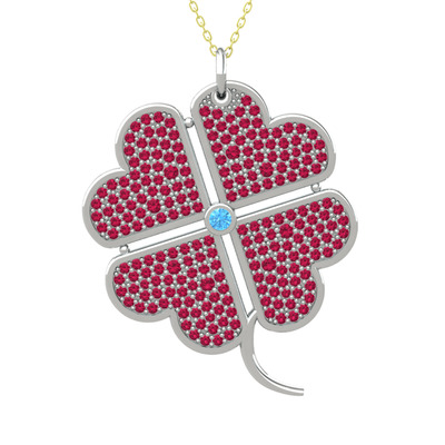 Akuamarin ve rodolit garnet 925 ayar gümüş kolye (40 cm altın rolo zincir)