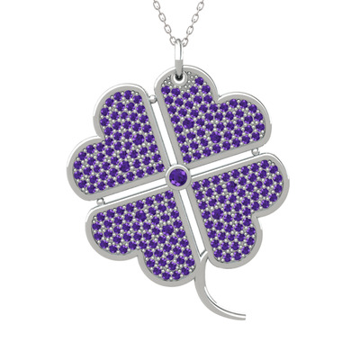 Ametist 14 ayar beyaz altın kolye (40 cm beyaz altın rolo zincir)