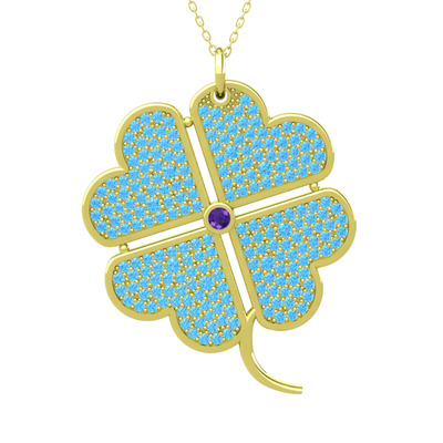 Ametist ve akuamarin 8 ayar altın kolye (40 cm altın rolo zincir)