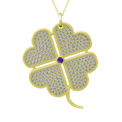 Ametist ve beyaz zirkon 8 ayar altın kolye (40 cm altın rolo zincir)