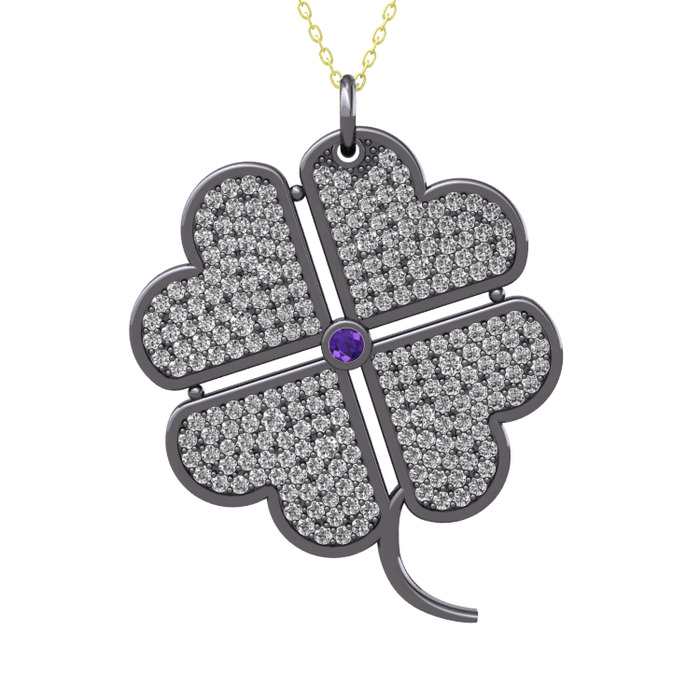 Ametist ve beyaz zirkon 925 ayar siyah rodyum kaplama gümüş kolye (40 cm altın rolo zincir)