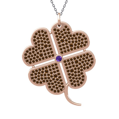 Ametist ve dumanlı kuvars 8 ayar rose altın kolye (40 cm gümüş rolo zincir)