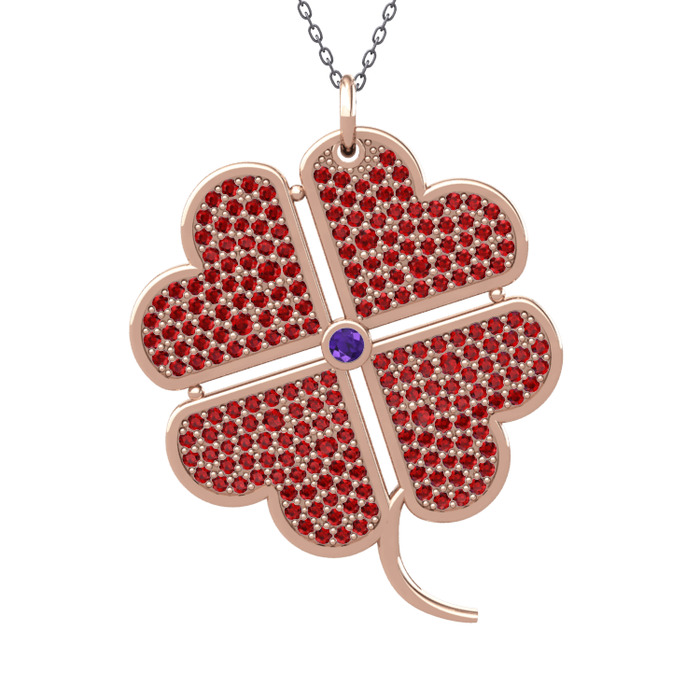 Ametist ve garnet 18 ayar rose altın kolye (40 cm gümüş rolo zincir)