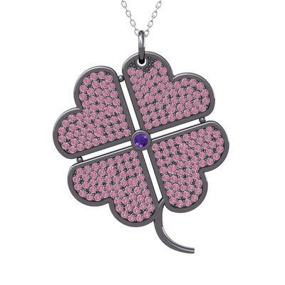 Ametist ve pembe kuvars 925 ayar siyah rodyum kaplama gümüş kolye (40 cm beyaz altın rolo zincir)