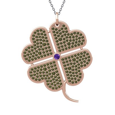 Ametist ve peridot 8 ayar rose altın kolye (40 cm gümüş rolo zincir)