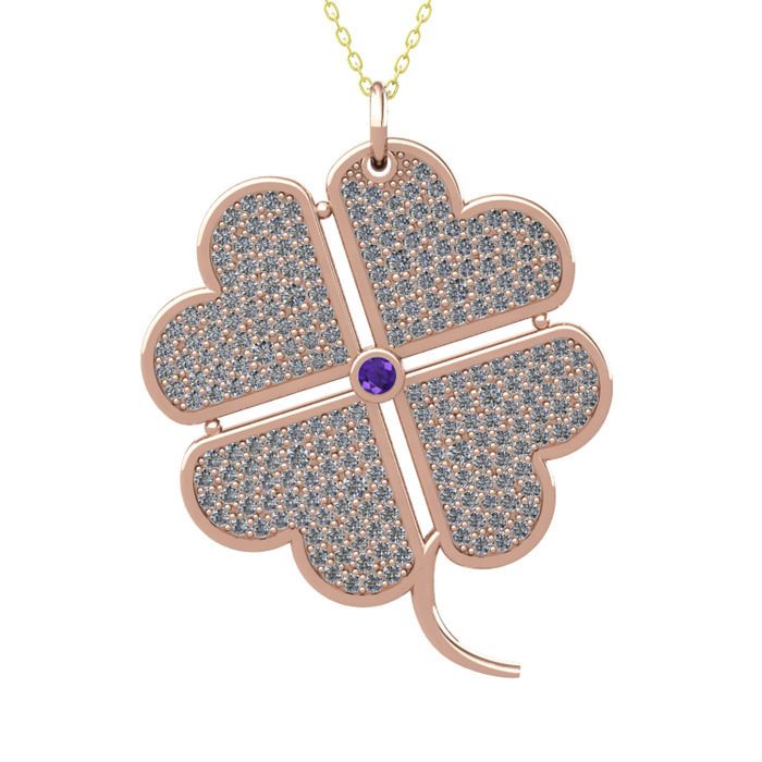 Ametist ve pırlanta 8 ayar rose altın kolye (3.3 karat, 40 cm altın rolo zincir)