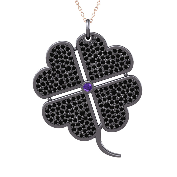 Ametist ve siyah zirkon 925 ayar siyah rodyum kaplama gümüş kolye (40 cm rose altın rolo zincir)