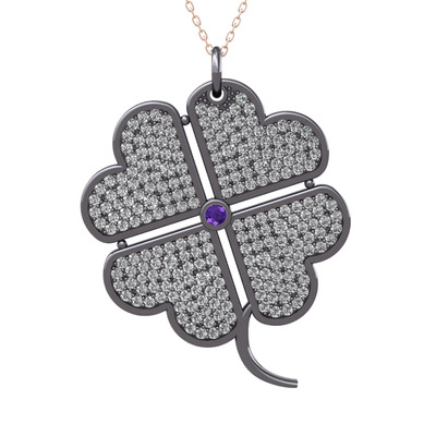 Ametist ve swarovski 925 ayar siyah rodyum kaplama gümüş kolye (40 cm gümüş rolo zincir)