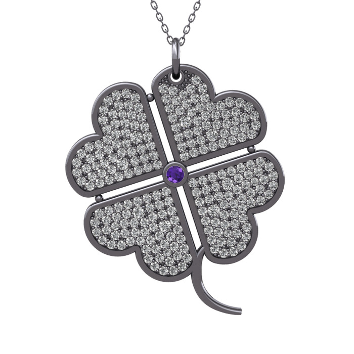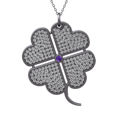 Ametist ve swarovski 925 ayar siyah rodyum kaplama gümüş kolye (40 cm gümüş rolo zincir)