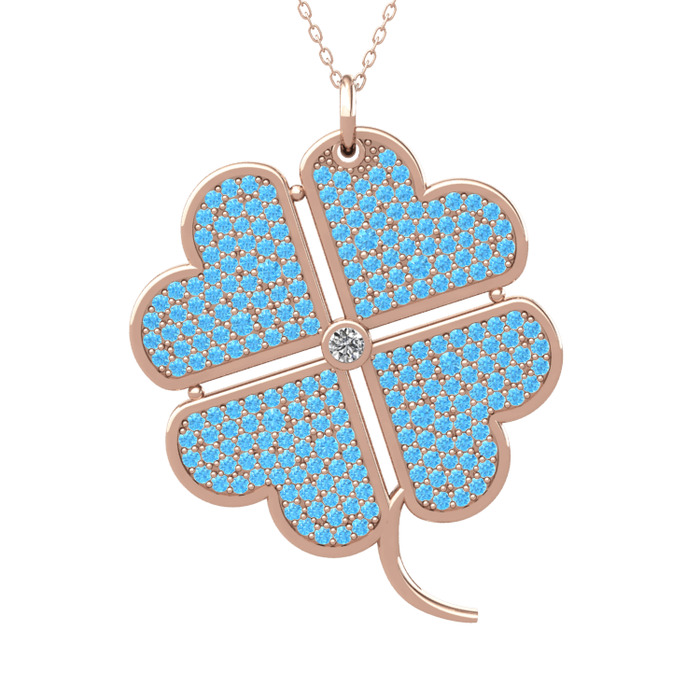 Beyaz zirkon ve akuamarin 14 ayar rose altın kolye (40 cm rose altın rolo zincir)