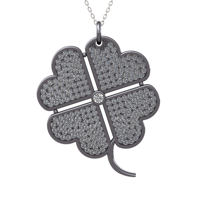 Beyaz zirkon ve pırlanta 925 ayar siyah rodyum kaplama gümüş kolye (3.3 karat, 40 cm beyaz altın rolo zincir)