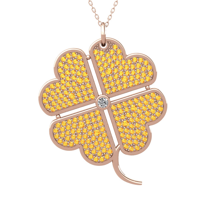 Beyaz zirkon ve sitrin 925 ayar rose altın kaplama gümüş kolye (40 cm gümüş rolo zincir)