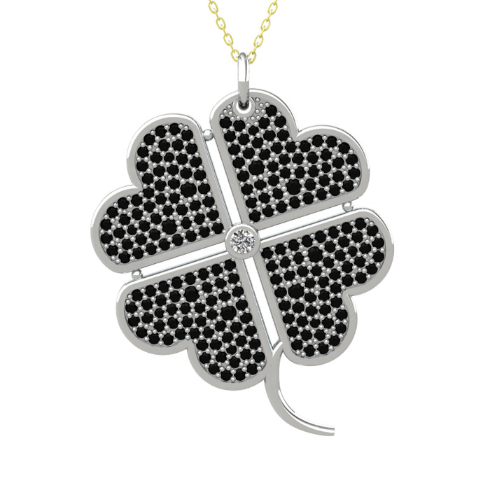 Beyaz zirkon ve siyah zirkon 925 ayar gümüş kolye (40 cm altın rolo zincir)