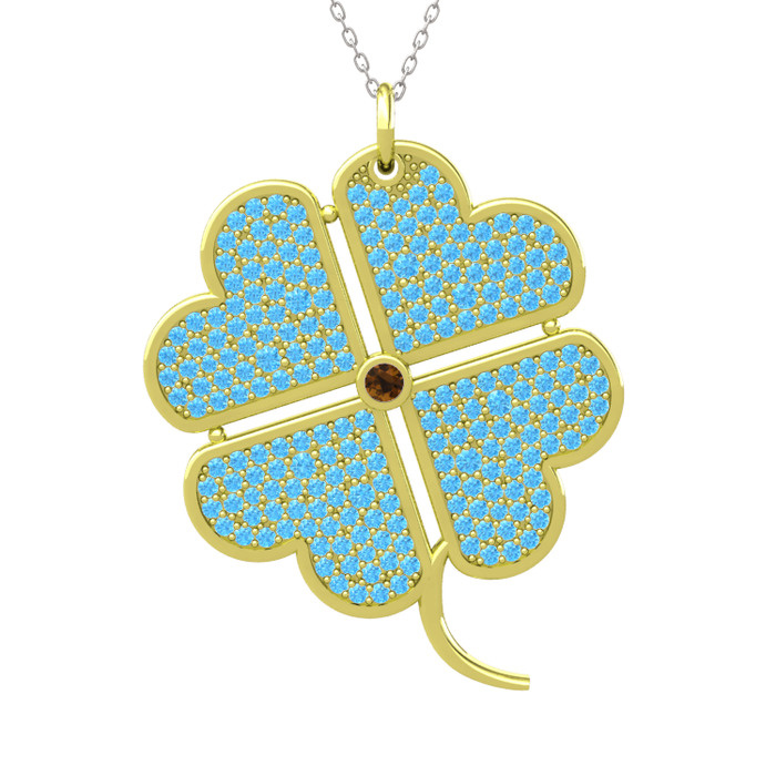 Dumanlı kuvars ve akuamarin 8 ayar altın kolye (40 cm gümüş rolo zincir)