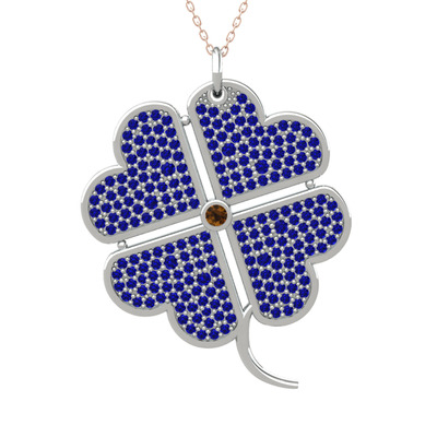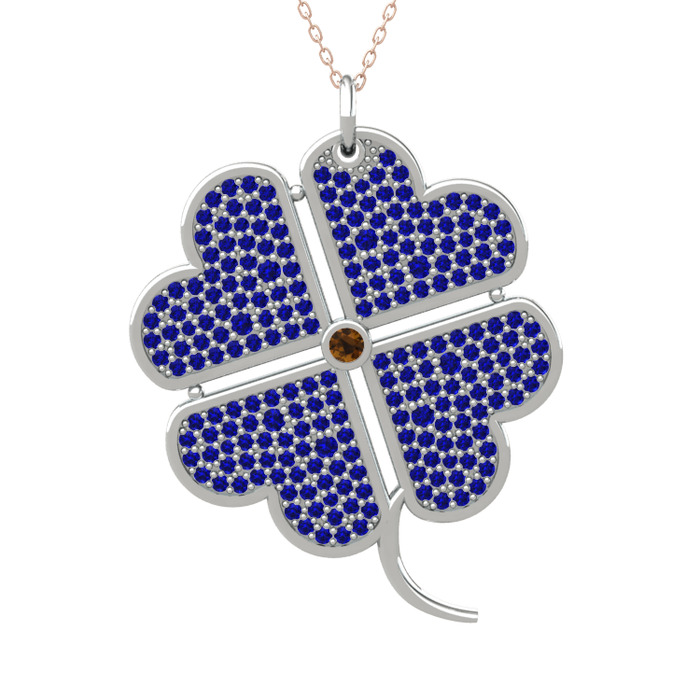 Dumanlı kuvars ve lab safir 8 ayar beyaz altın kolye (40 cm rose altın rolo zincir)