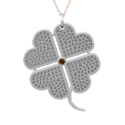 Dumanlı kuvars ve pırlanta 14 ayar beyaz altın kolye (3.3 karat, 40 cm rose altın rolo zincir)