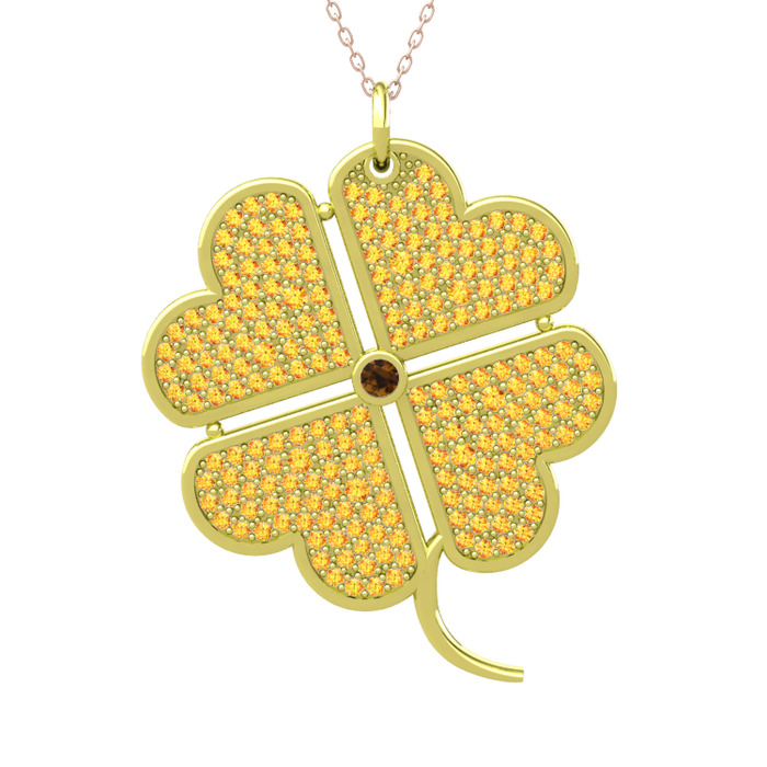Dumanlı kuvars ve sitrin 14 ayar altın kolye (40 cm gümüş rolo zincir)