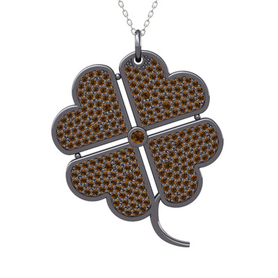 Dumanlı kuvars 925 ayar siyah rodyum kaplama gümüş kolye (40 cm beyaz altın rolo zincir)