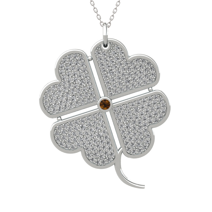 Dumanlı kuvars ve swarovski 18 ayar beyaz altın kolye (40 cm beyaz altın rolo zincir)