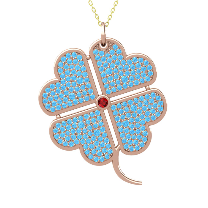 Garnet ve akuamarin 925 ayar rose altın kaplama gümüş kolye (40 cm gümüş rolo zincir)